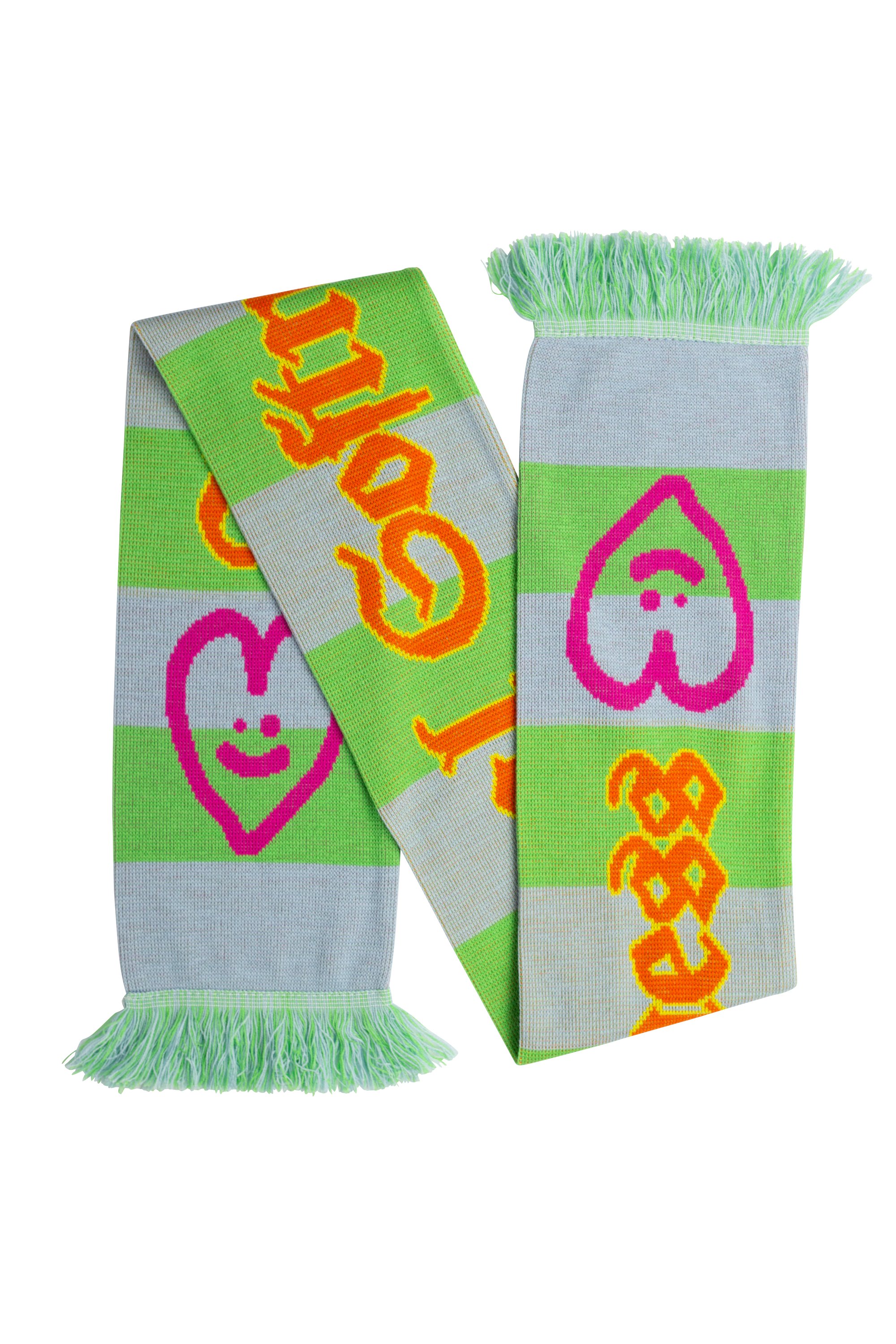 Equal parts statement piece and soft embrace, the Super Soft Soccer Scarf takes the bold colors and classic shape of football culture and flips the script. Featuring our logo name and signature playful illustrations, this scarf breaks the mold—no aggressive chants required. Wrap yourself in a reminder that team spirit doesn’t have to mean toughness and that softness always wins. Perfect for standing out on the sidelines or just keeping cozy in style.